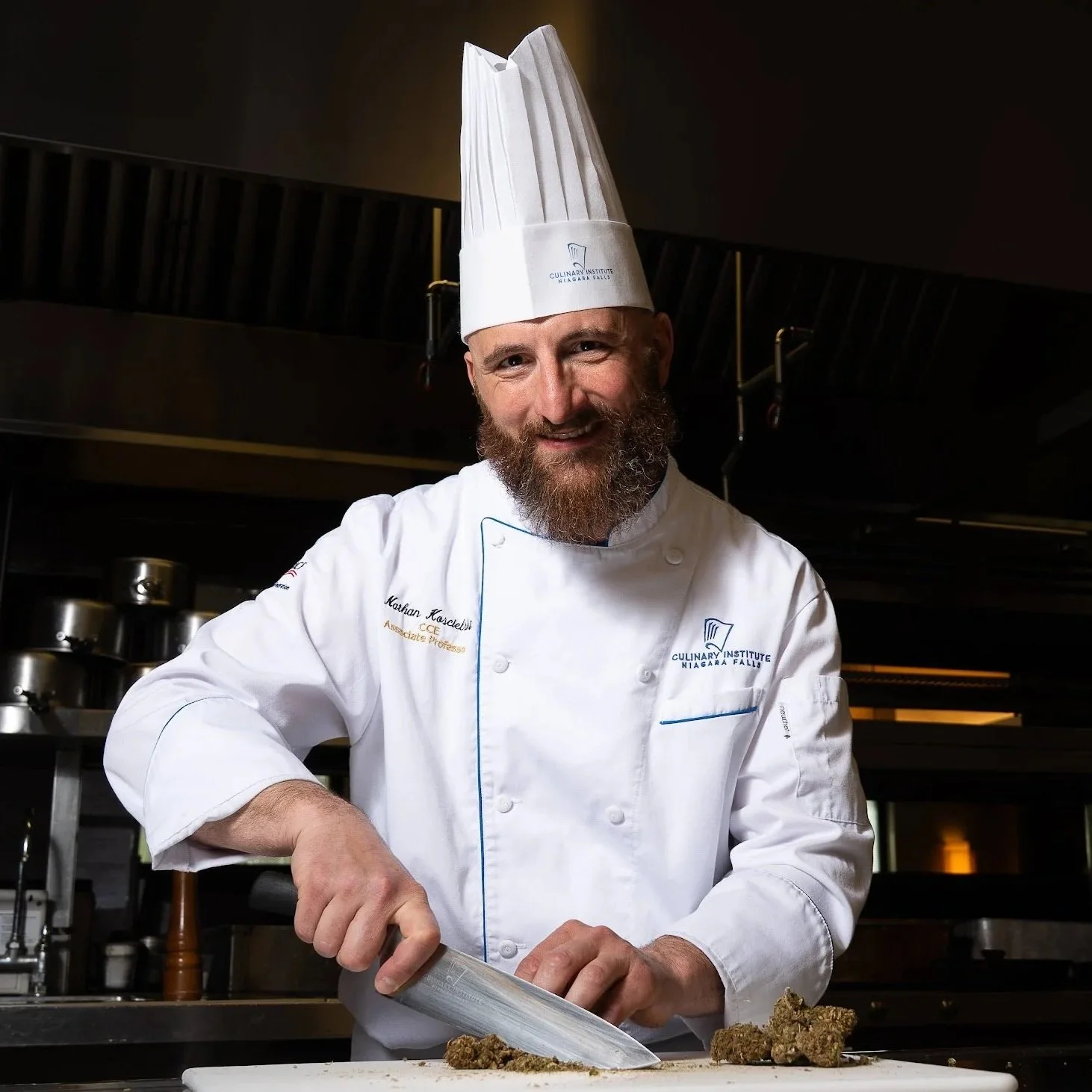 I’m Nathan Koscielski, a Certified Culinary Educator (CCE) and Associate Professor of Culinary Arts at the Niagara Falls Culinary Institute (NFCI) at SUNY Niagara, where I’ve been teaching since 2017.